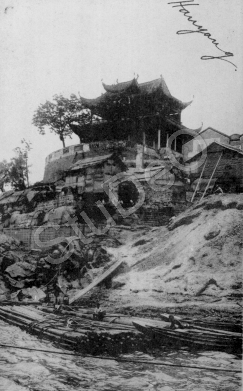 Beschreibung: Tempelanlage am Steilufer des Yangtze in Hanyang.