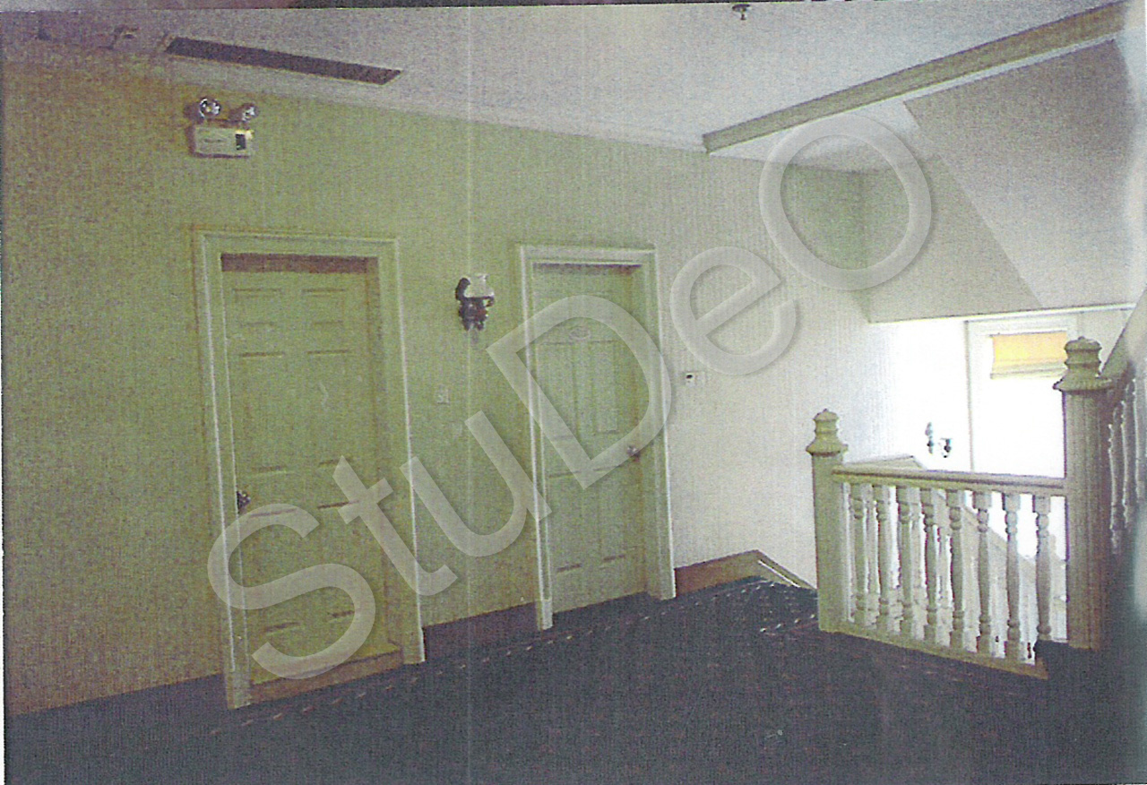 Beschreibung: Treppenaufgang und Türen zu den ehemaligen oberen Schlafräumen.