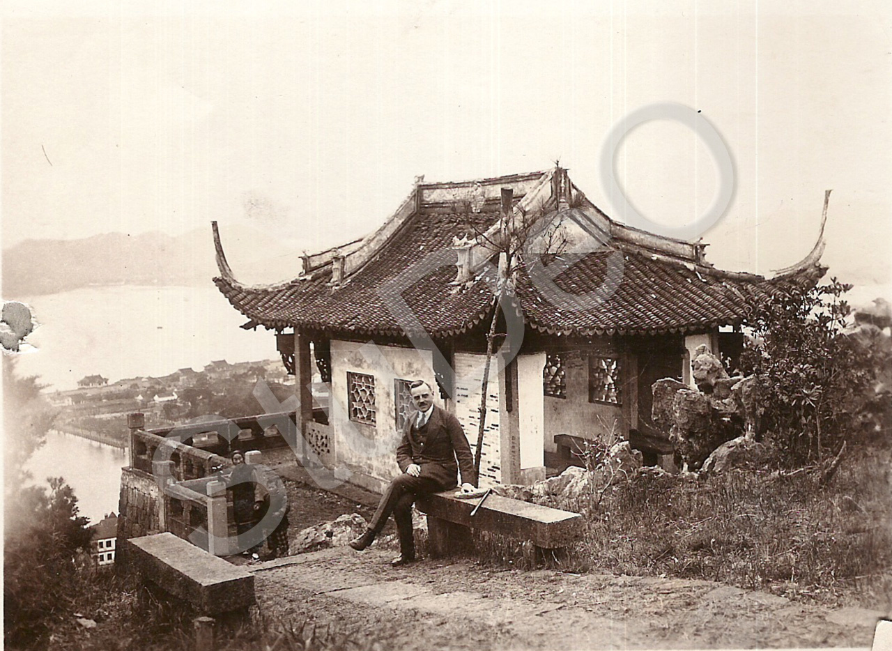 Beschreibung: Alfred Berrer in Hankaw „Rasthäuschen bei Hankow“.