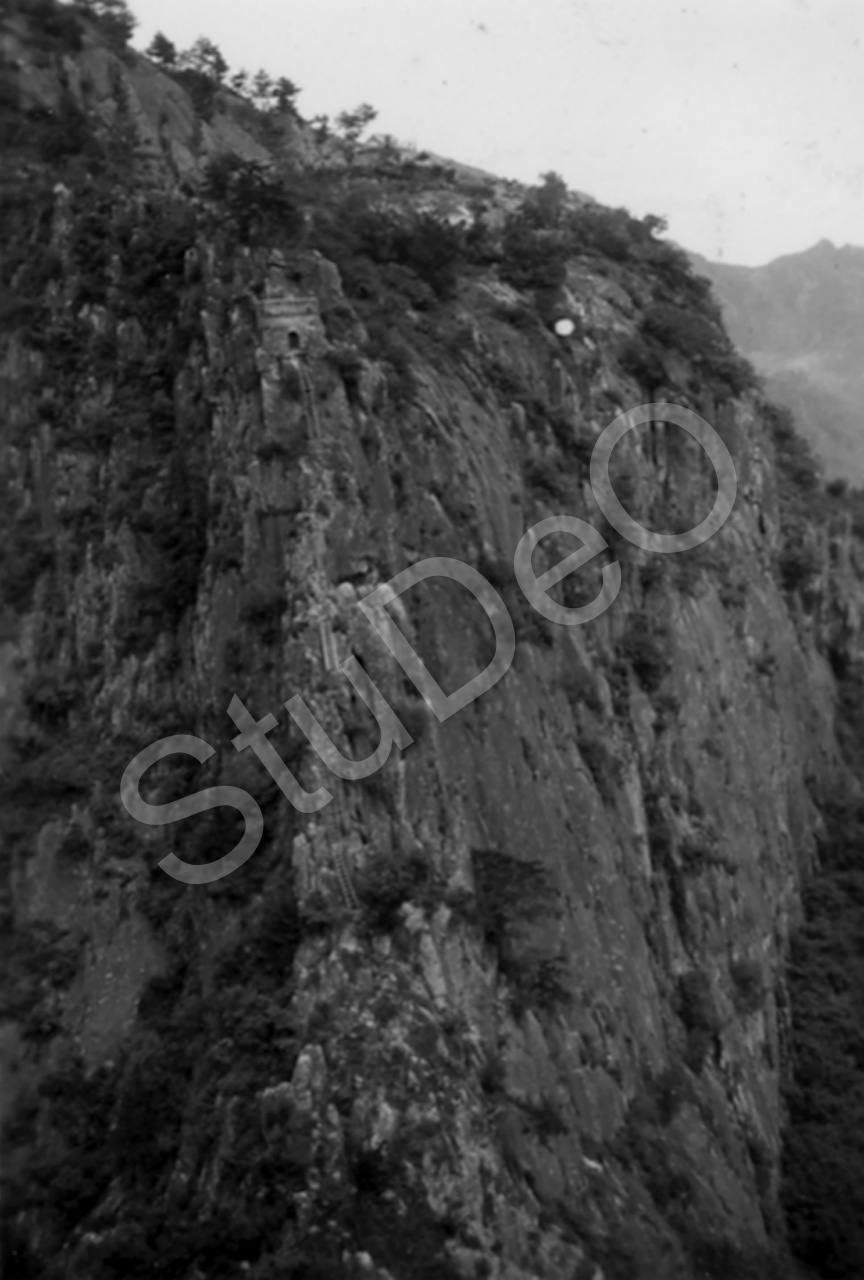 Beschreibung: Steiler Aufstieg, teilweise mit Holzleitern, die zu der Zeit ziemlich morsch waren, auf den Pei Niu Ting in der Provinz Honan oder Henan.