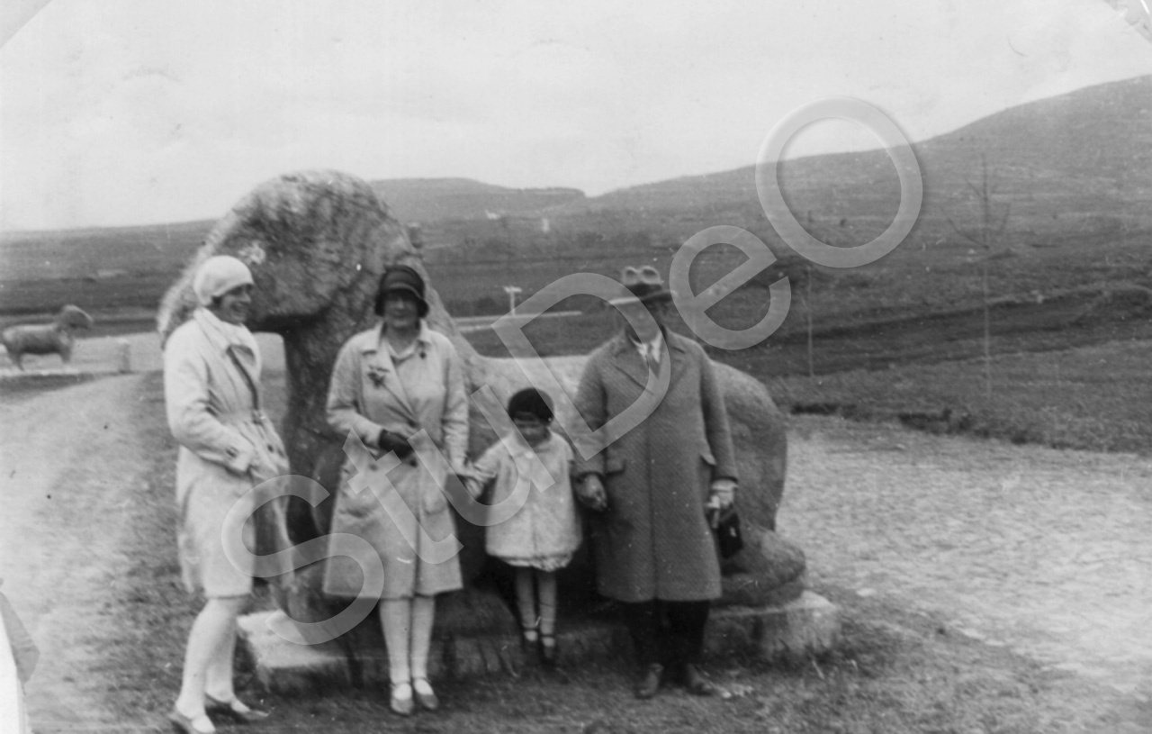Beschreibung: Geisterallee, Ehepaar Beelitz, Erika Simon-Eberhard mit Tochter Ilse, hinten Purpurberge.