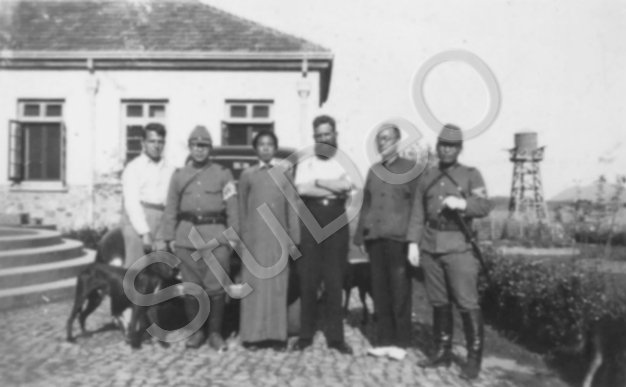Beschreibung: Auf dem Gelände der Kiang Nan Cement Works in Hsi Sha Shan. li. Dr. Karl Günther, Nielsen (mit Bart) und japanische Soldaten nach der Eroberung von Nanking durch die Japaner im Dezember 1937.