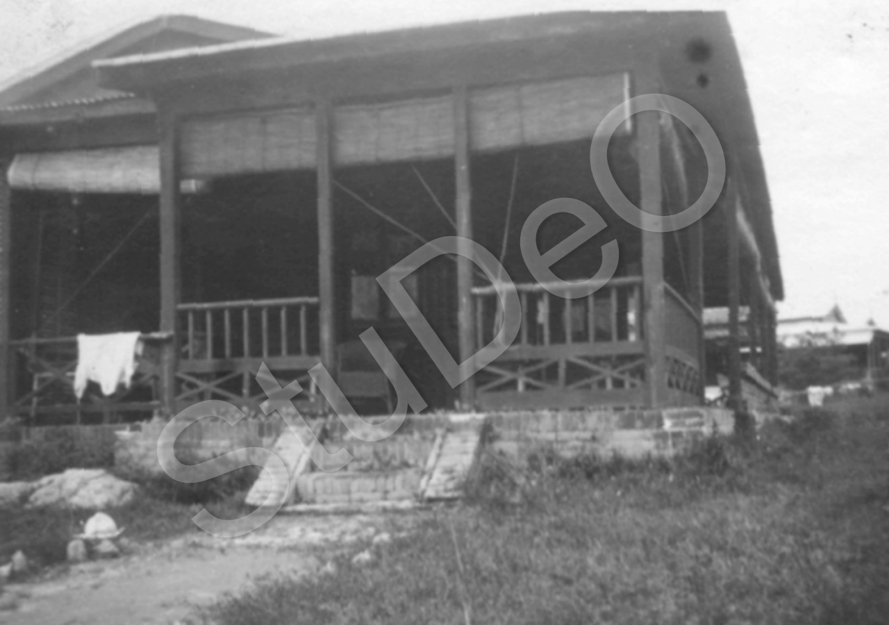 Beschreibung: Von Familie Gerngroß gemietete Haus (Baracke vom Dt. Militär aus Boxerzeit) am Strand.