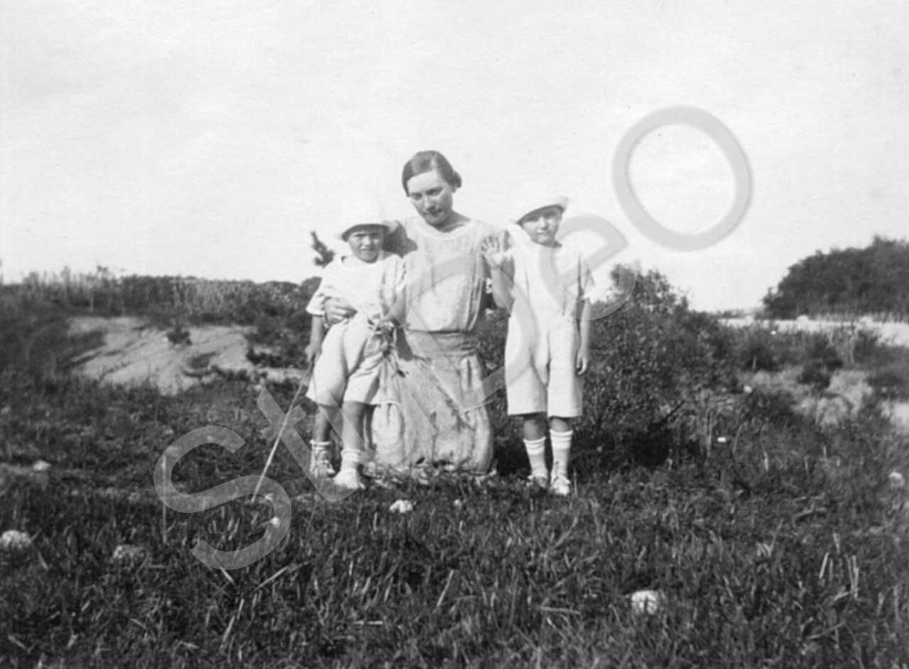 Beschreibung: Marie Balser mit Christian und Johannes in de Dünen.