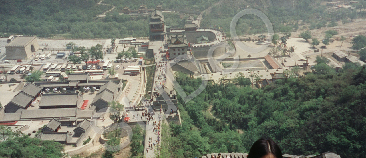 Beschreibung: Blick von der Mauer auf den mitleren und wertlichen Teil der Park- und Häuser­anlage für Besucher auf Bild P1265.