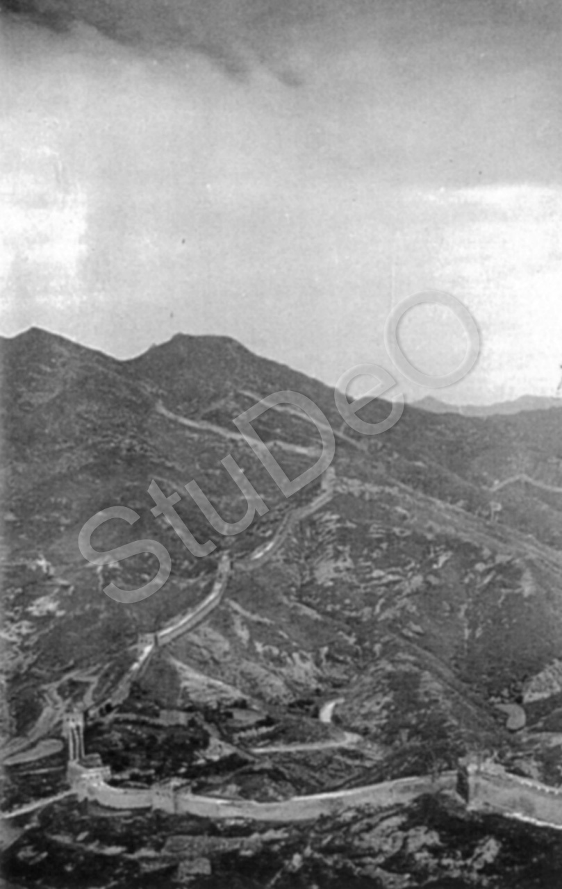 Beschreibung: Über Bergketten ziehende Große Mauer.