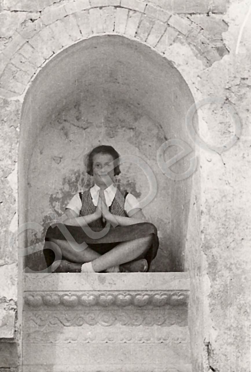 Beschreibung: Irmchen Marschall posiert in einer Tempelnische. Umgebung des Sommerpalastes.