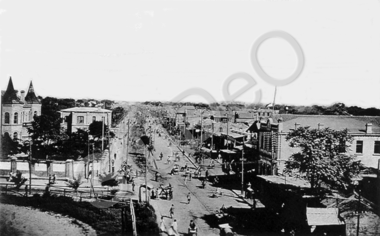 Beschreibung: Blick vom Hatamentor nach Norden auf die Hatamenstraße. Links die LegationStreet (vorne) und das Gesandtschaftsviertel.