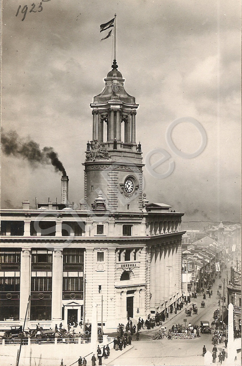Beschreibung: „Das neue Postamt von Shanghai. Die Straße in die man sieht, ist die Nord Sechuan Rd. die zur Wohnung der Familie Alfred Berrer führt. Die Range Rd. geht quer dazu etwa 10 Minuten weit vom Postamt“.