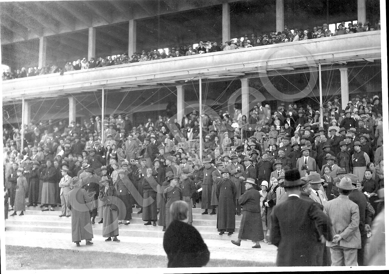 Beschreibung: Publikum in den Rängen auf dem Race Cource im Süden von den Tientsiner Konzessionen.