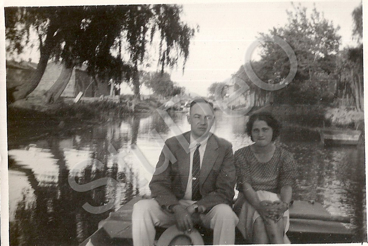 Beschreibung: Robert und Maria Puck auf einer Bootsfahr auf den Kanälen am Race Course in Tientsin.