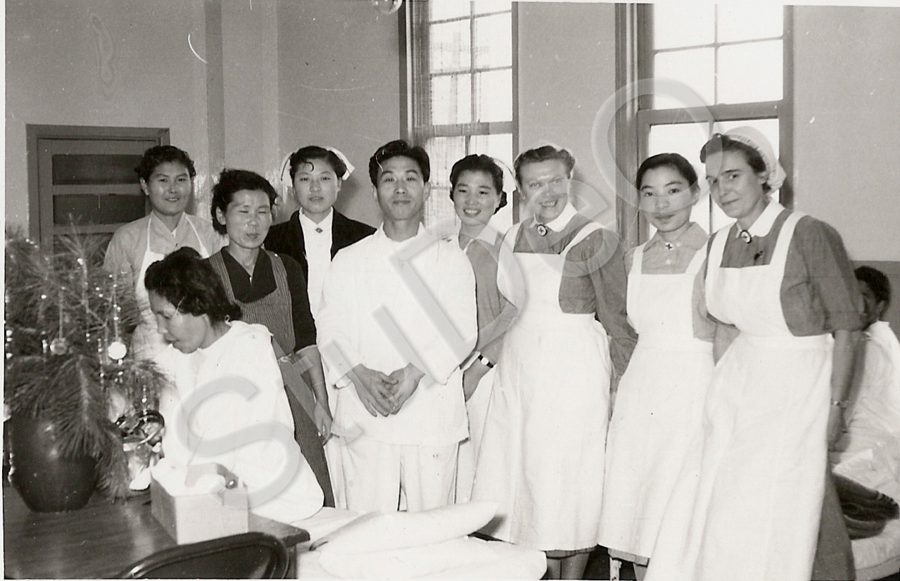 Beschreibung: Koreanisches Personal und Schwesrtern im Rote Kreuz Hospitals Pusan am 25.12.1954.