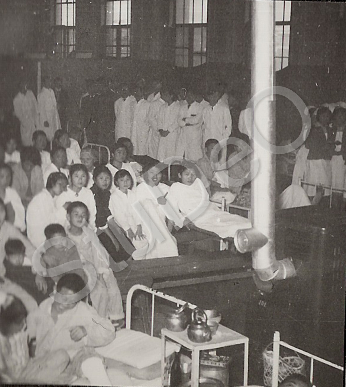 Beschreibung: Beschreibung: Ärzte gehen anlässlich Weihnachten in einen Krankensaal im Rote Kreuz Hospital Pusan am 25.12.1954.