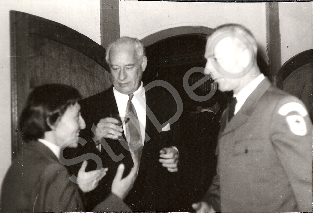 Beschreibung: Frau Thürmer, Botschafter Harz u. Prof Günther Huwer (re.) im Deutschen Rotes Kreuz Hospital am 17.02.1957.