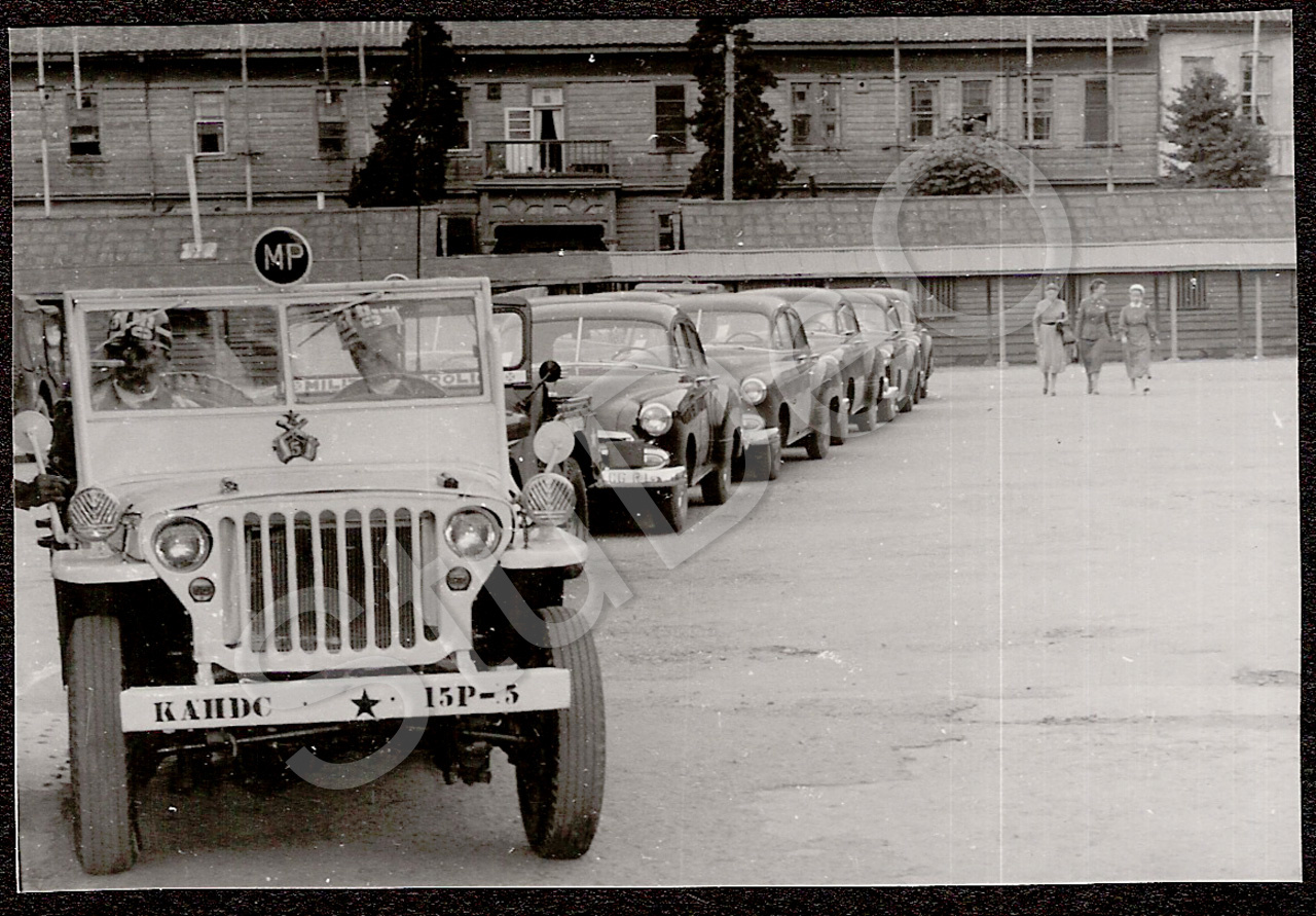 Beschreibung: General Decker (US-Army Pusan) fährt mit einem Wagenkonvoi nach dem Besuch des Rote Kreuz Hospital Pusan weg.