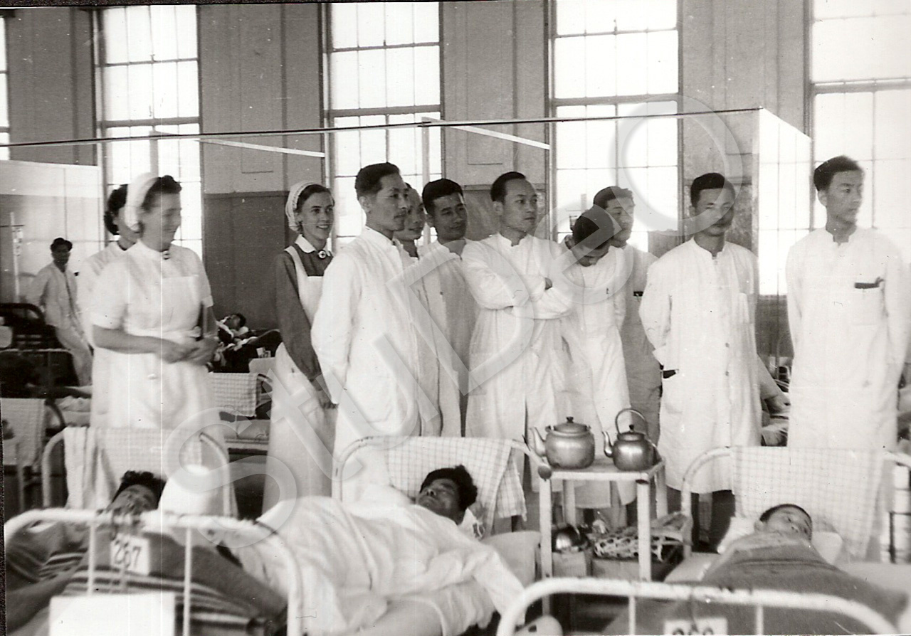 Beschreibung: Visite oder Lehrgang von koreanischen Medizinstudenten im Mehrbett-Krankensaal im Rote Kreuz Hospital Pusan.