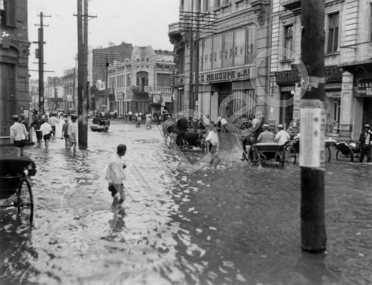 Beschreibung: „Habognenue“ überschwemmte Straße „Kumauskau Yuya, chinesische Straße. kaifhaus Tschurin.