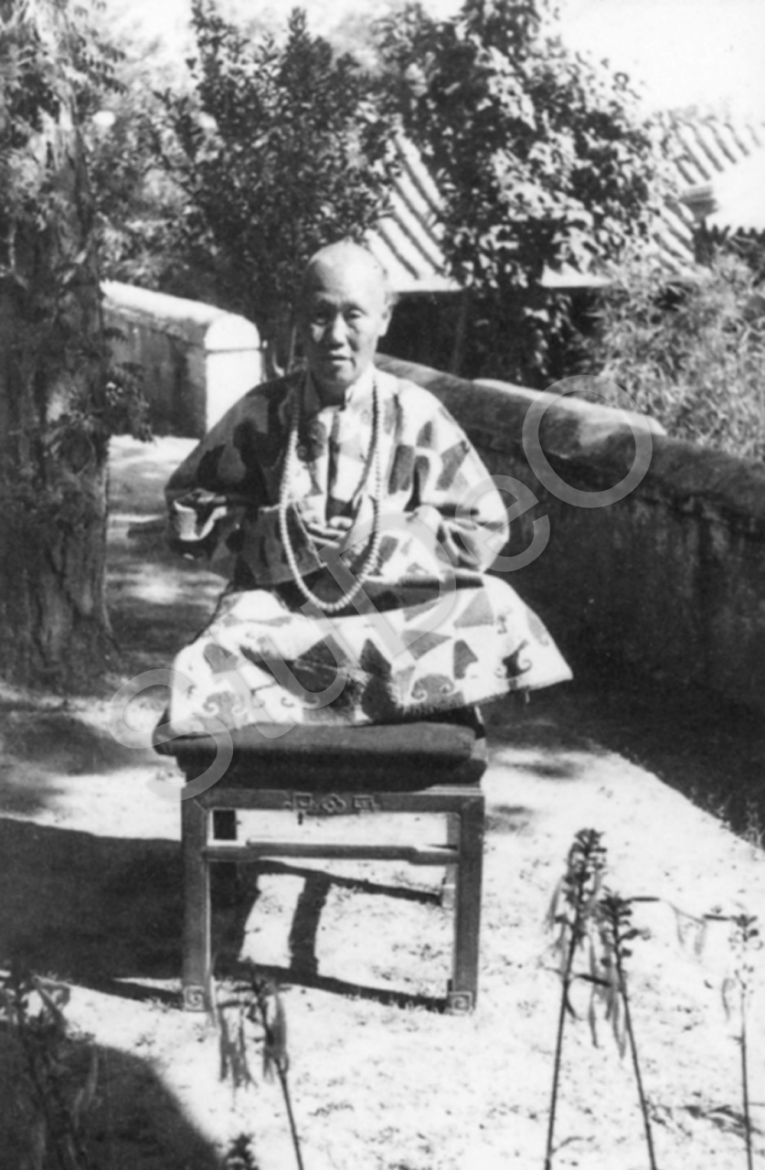 Beschreibung: Mönch, Abt, bei den Kaisergräbern in Mukden im Lotossitz und feierli­chem Gewand.