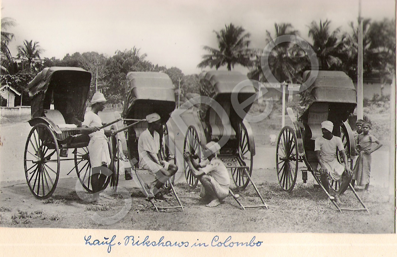 Beschreibung: Rikshaws in Colombo, warten auf Gäste. Hochzeitsreise A. und F. Mittag.