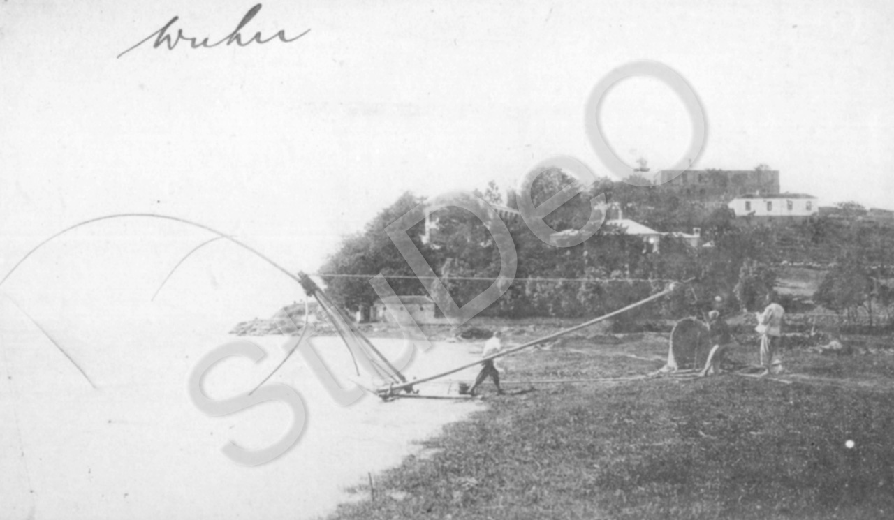 Beschreibung: Wuhu stromaufwärts von Nanking. Fischer legt sein Netz aus.