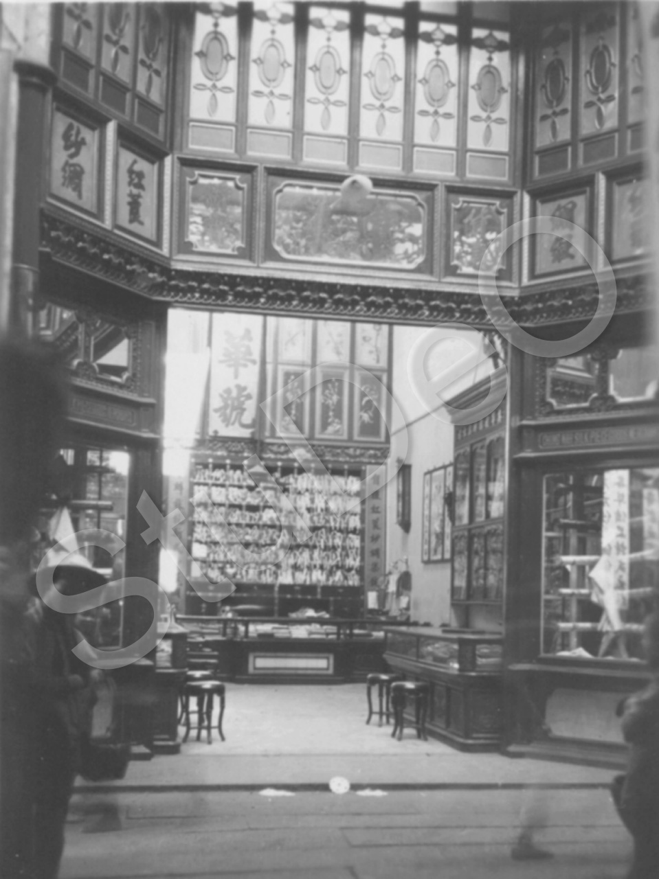 Beschreibung: Chinesischer Seidenladen.