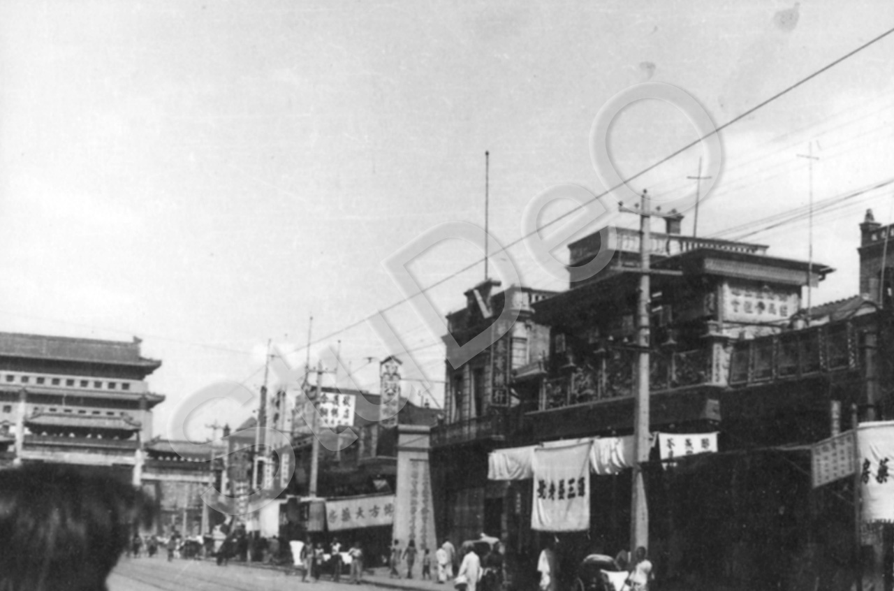 Beschreibung: Zweistöckige Häuser, evtl. Chinesenviertel.