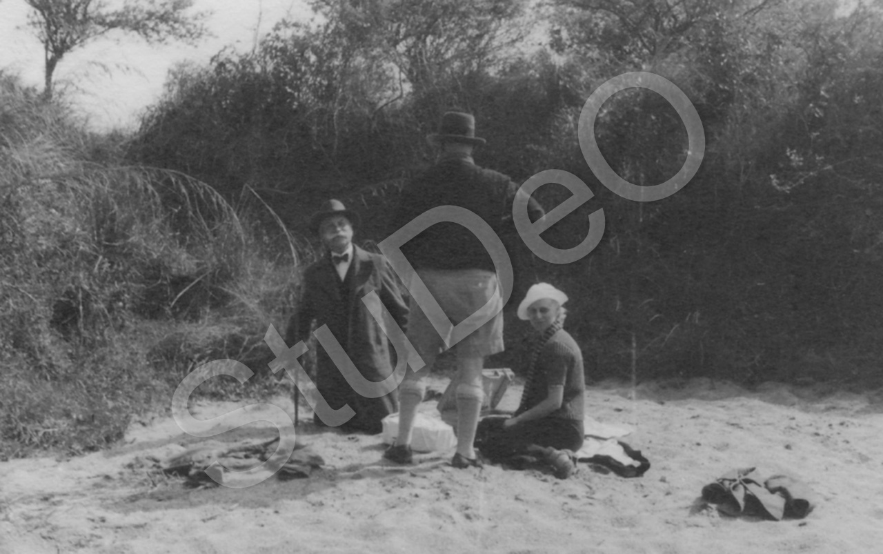 Beschreibung: Hellmuth Lehmann, von Hinten, Hermann Huwer und Margret Lehmann bei einem Picnic. Hier merkten sie, daß sie beobachtet wurden, s. P5585.