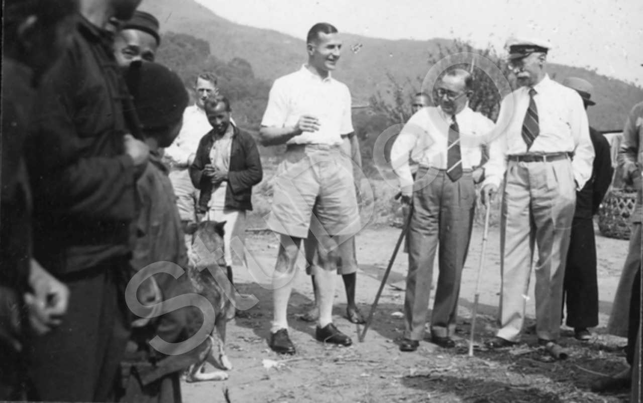 Beschreibung: Prof. Günther Huwer, Hellmuth Lehmann mit Hermann Huwer auf Wande­rung und der Begegnung mit Chinesen am 21.02.1937.