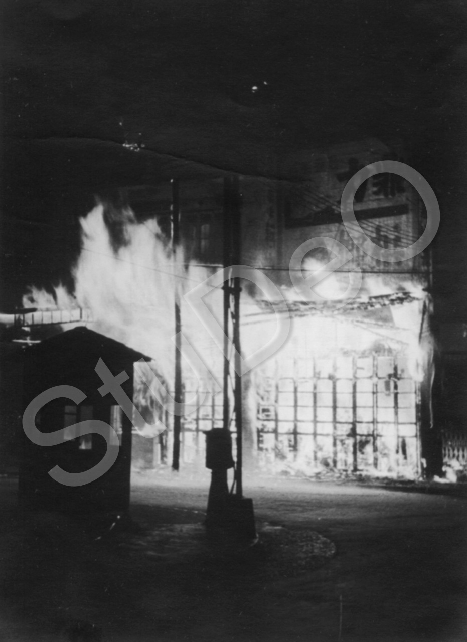 Beschreibung: Chinesischer Laden in Flammen am 26.10.1938.