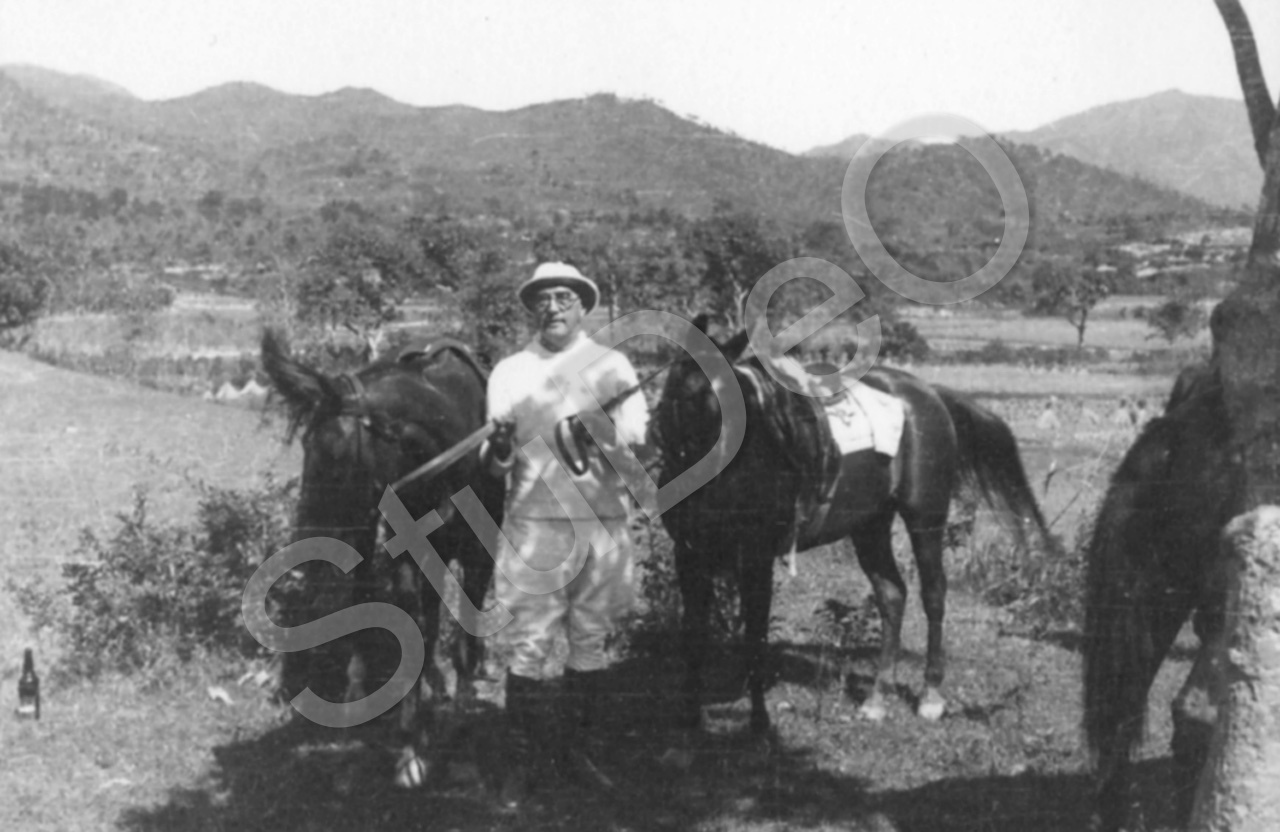 Beschreibung: Hellmuth Lehmann (Geschäftsführer von Carlowitz, Filiale Canton) mit zwei Pferden.