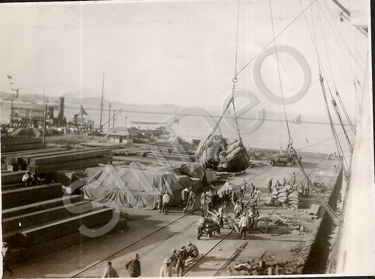 Beschreibung: Von der “Alster” auf den Habfen bzw. den Bund von Dairen fotografiert.
