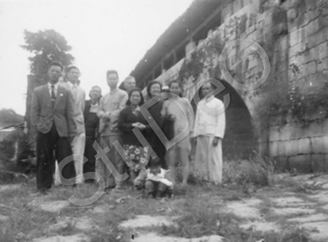 Beschreibung: Die Gruppe aus P5789 an der Brücke über vermutlich dem Li Jiang Fluß.