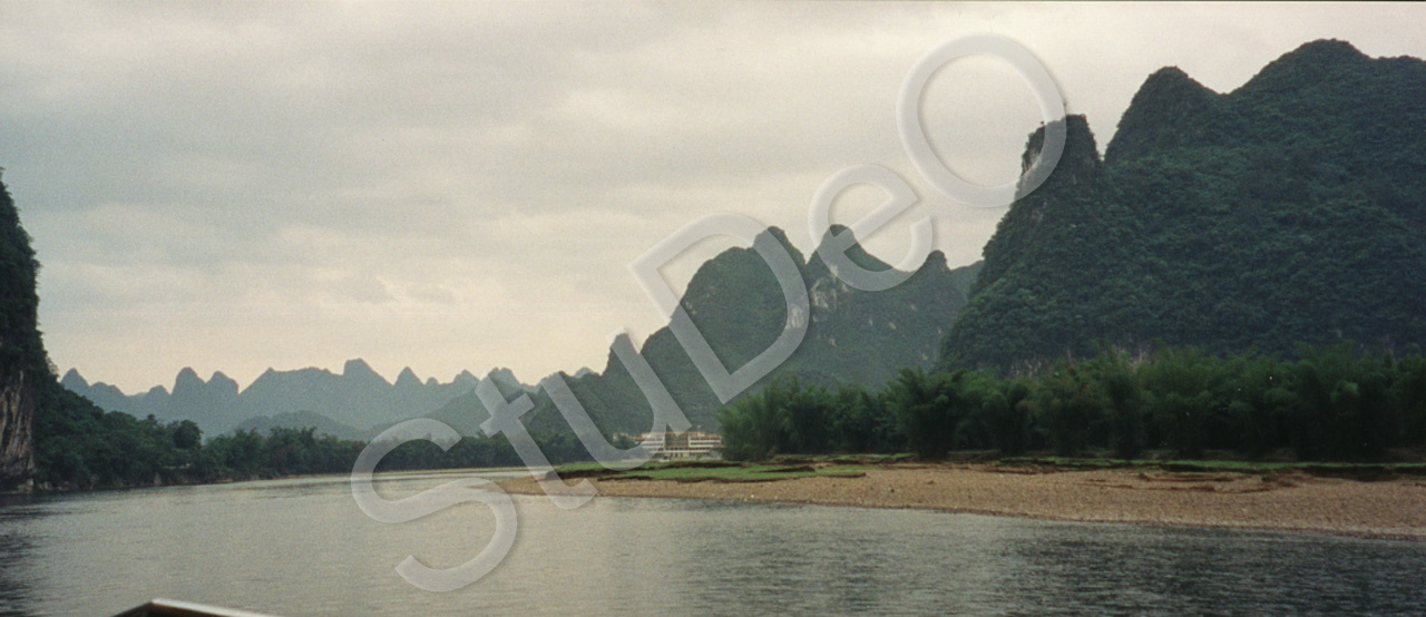 Beschreibung: Lijiang Fluß mit den Fubohügeln am 17.05.1999.