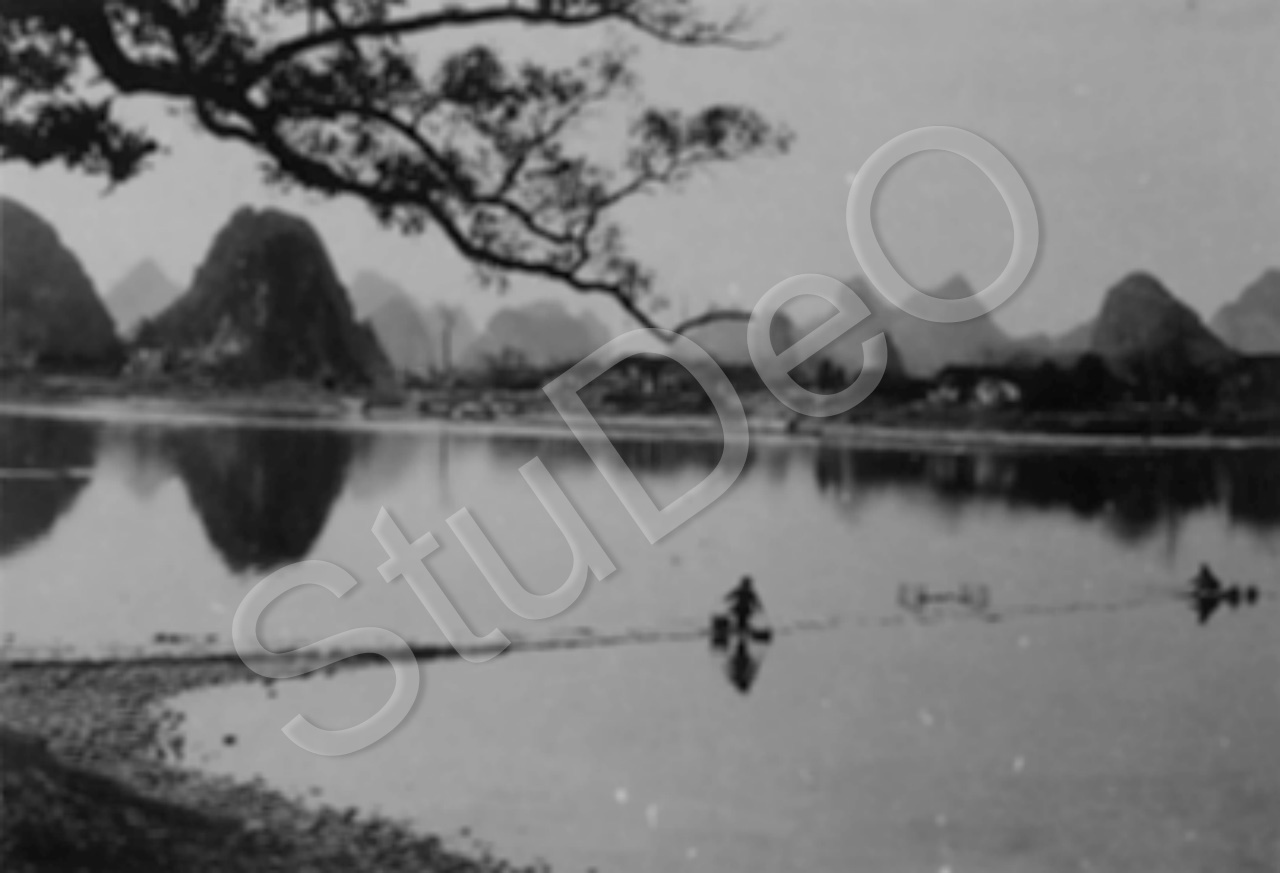 Beschreibung: Blick vom Nidiang-Fluß auf die Berge von Kweilin = Guilin.
