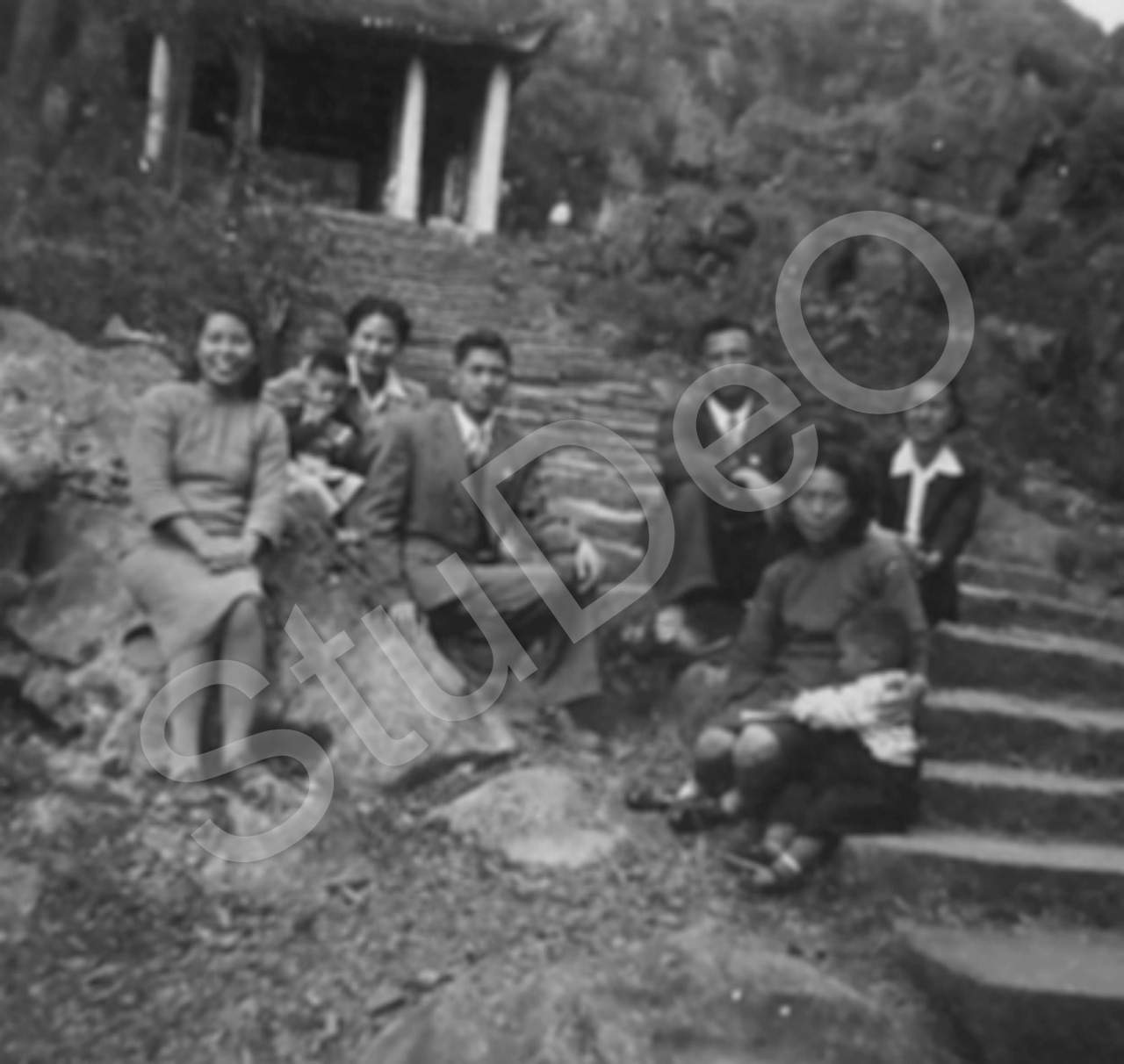 Beschreibung: Chinesischen, vermutlich Kollegen von Prof. Günther Huwer, auf Steintreppe.