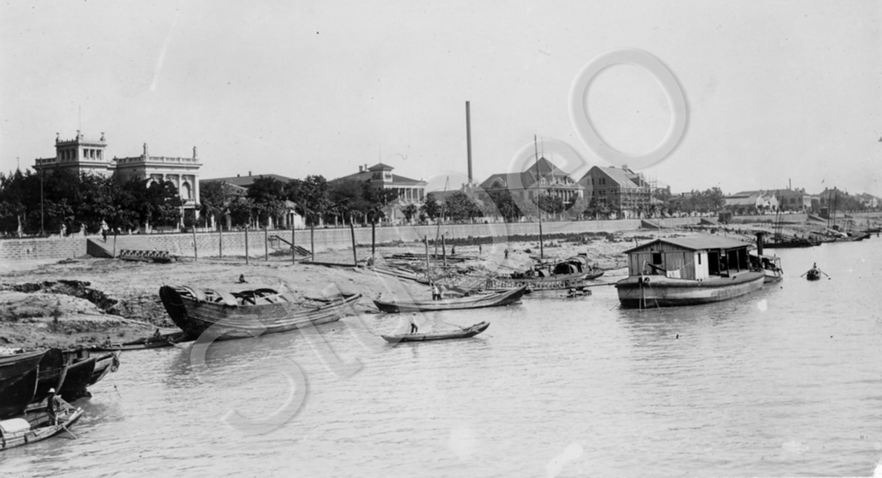 Beschreibung: Deutsche Geschäftshäuser im Hankow am Yanktse.
