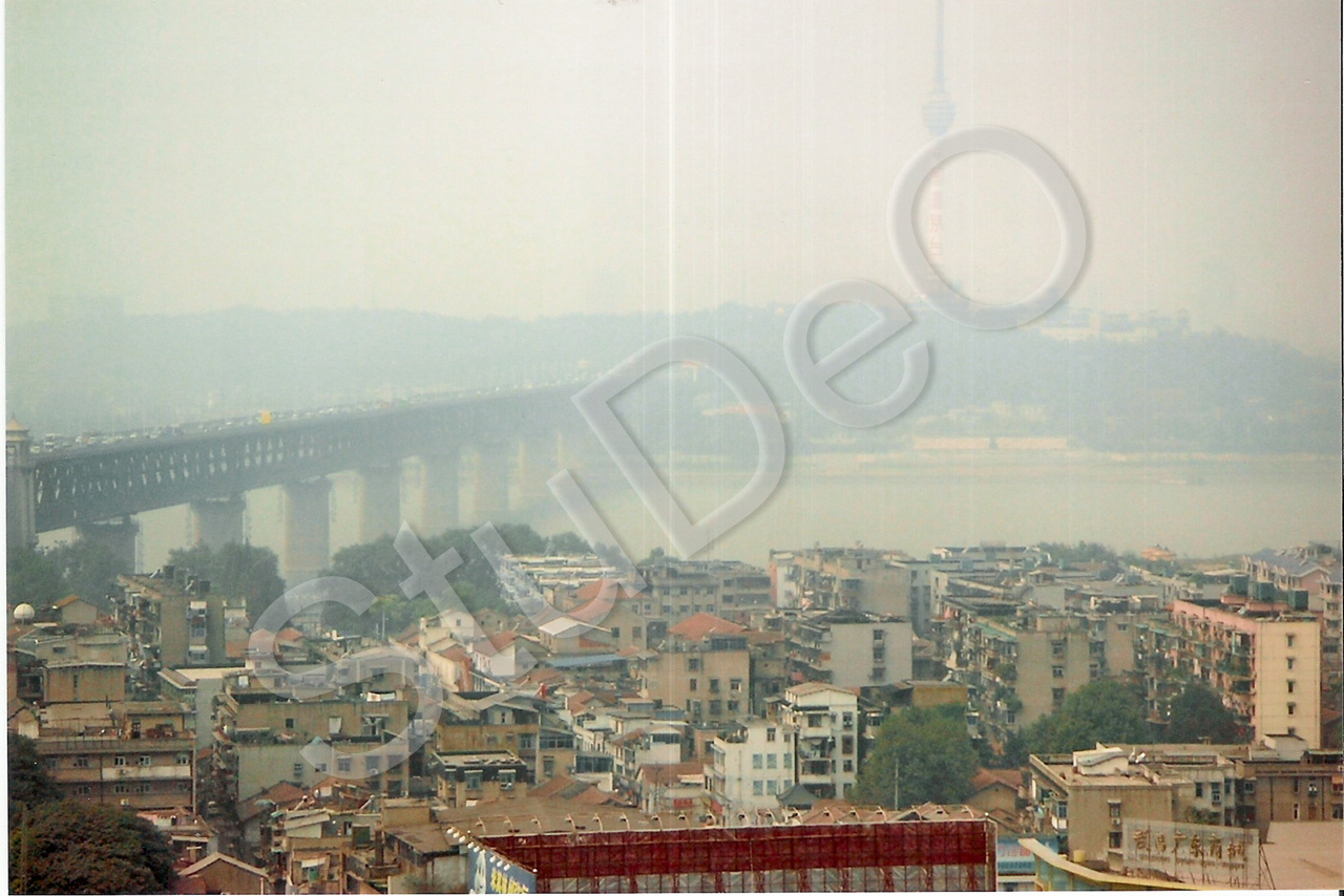 Beschreibung: Blick von der Hongshan Pagode in Wuchang über den Jangtse nach Hangjang und Hankow. Die erste und alte Brücke über den Fluß.