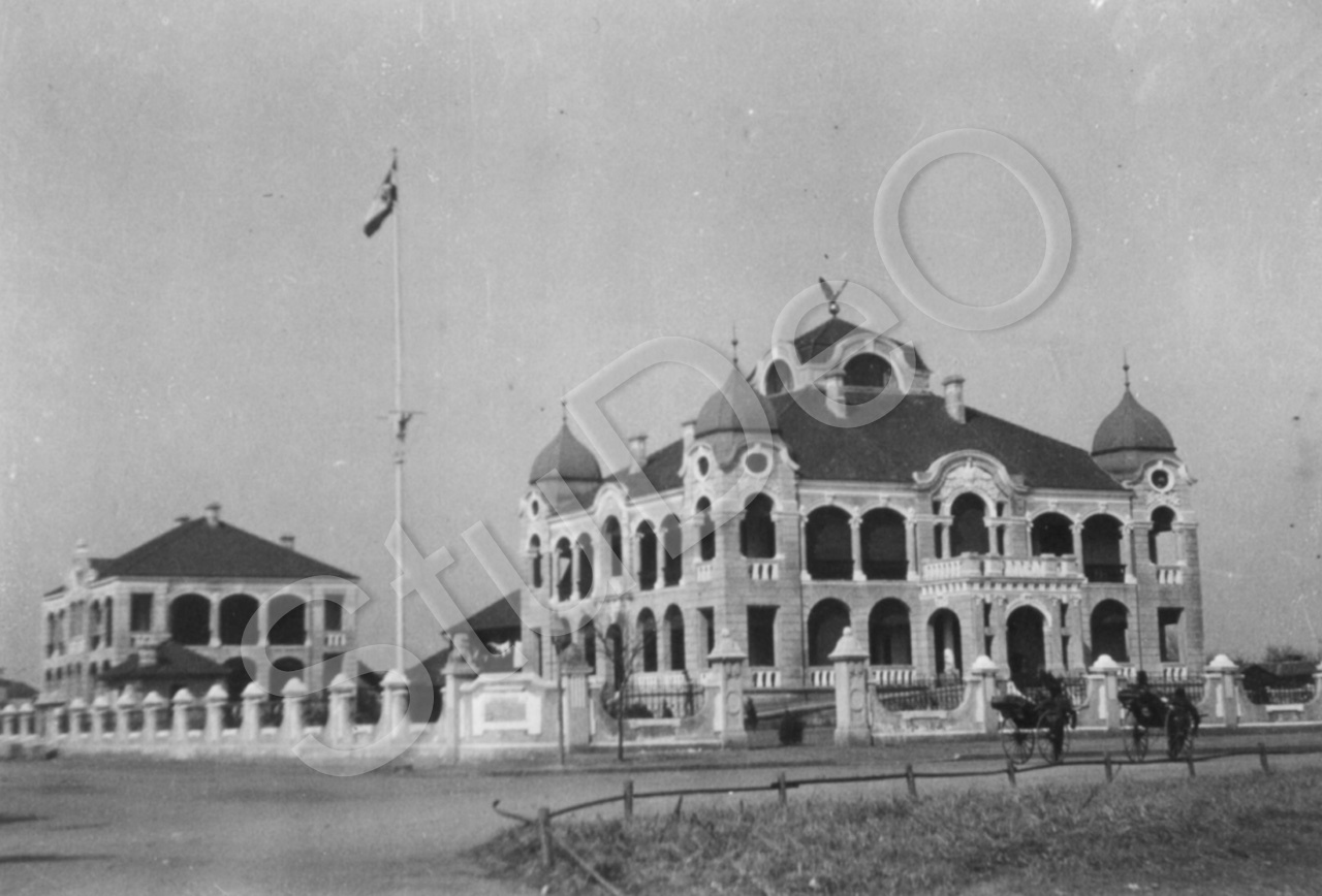 Beschreibung: Kaiserliches Deutsche Konsulat mit Adler auf dem Dach.