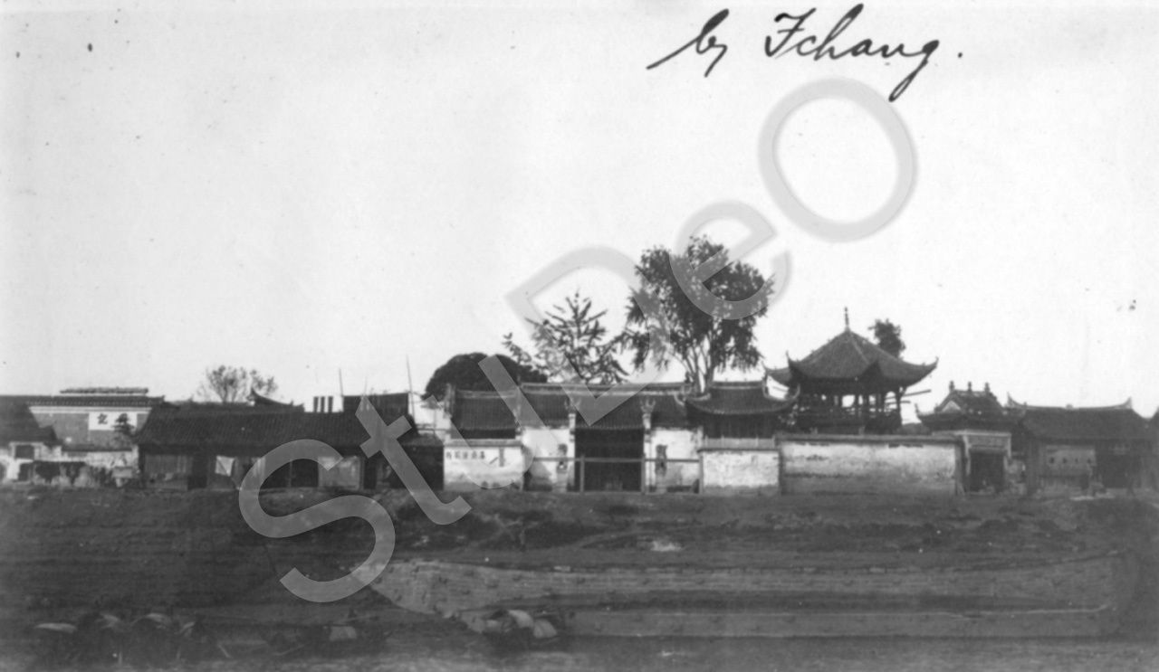 Beschreibung: Chinesischer Hof mit Häusern südlichen Stils bei Ichang (neu Yichang). (Huangling Tempel?).