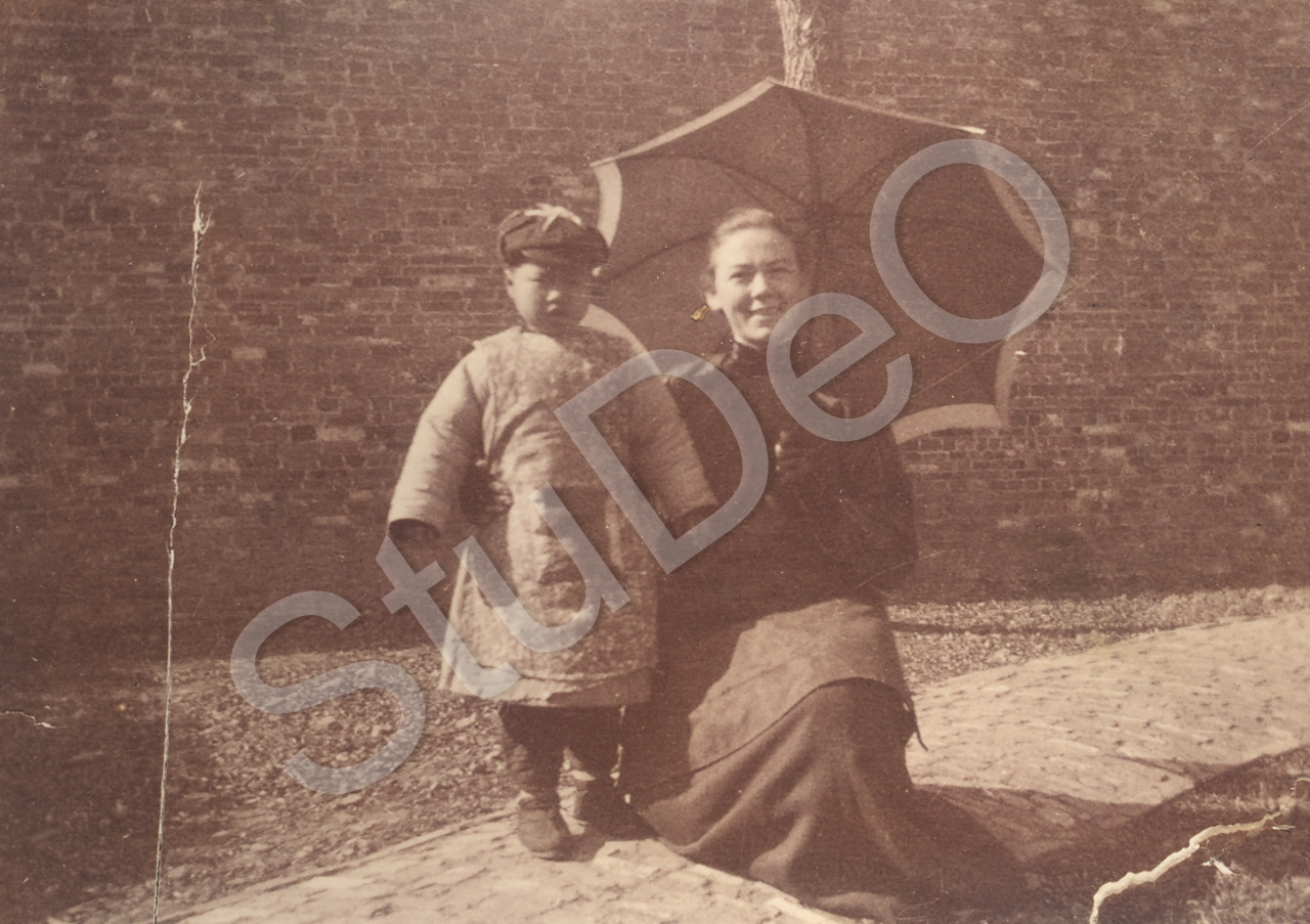 Beschreibung: Anna Clausen auf dem Grundstück der Berliner Mission in Changcha im Winter. „Die Chinesischschüler freuen sich immer, wenn sie mit Kinder ihr Chinsisch üben können“.