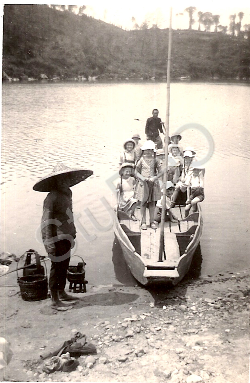 Beschreibung: „Missionarskinder" machen ein Bootsausflug in Taohuaping.