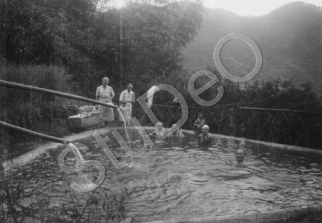 Beschreibung: Missionare der Liebenzeller Mission in Changcha schwimmen in einem großen Becken in den Bergen.