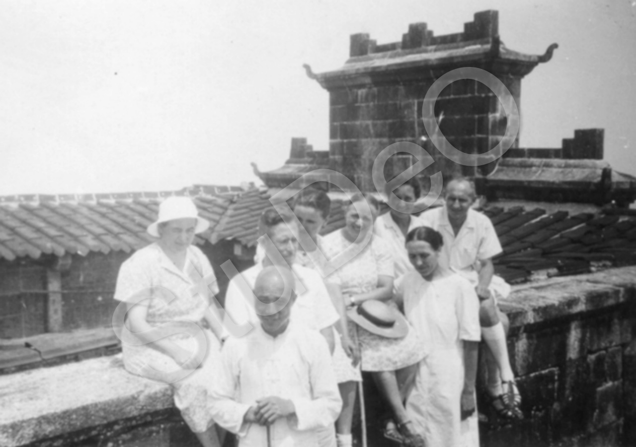 Beschreibung: Missionare der Libenzeller Mission vermutlich auf der Mauer der Stadt Changcha.