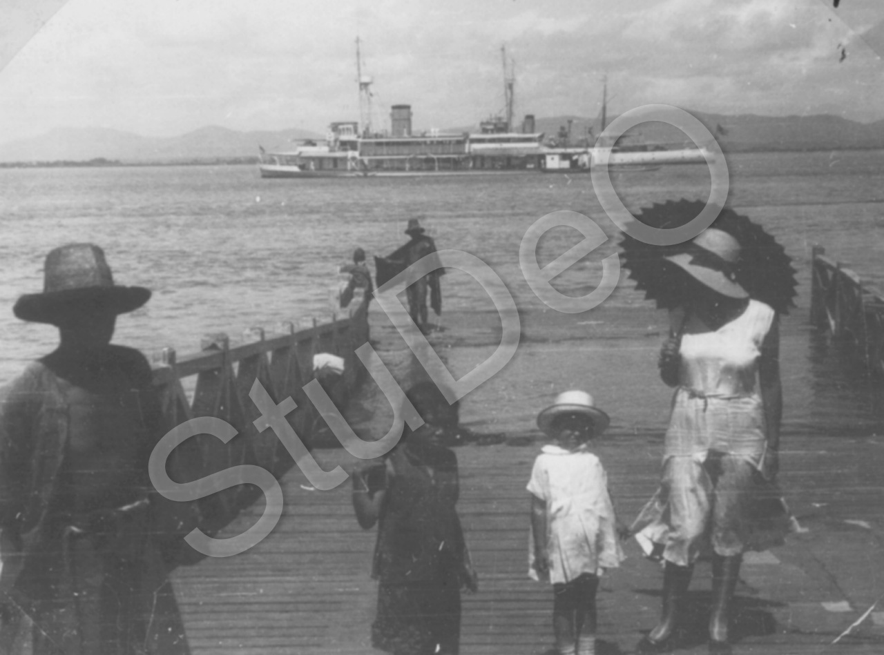 Beschreibung: Am Yangtse Kiang, Kriegsschiffe, Erika Simon-Eberhard mit Tochter Ilse, Chinesen.