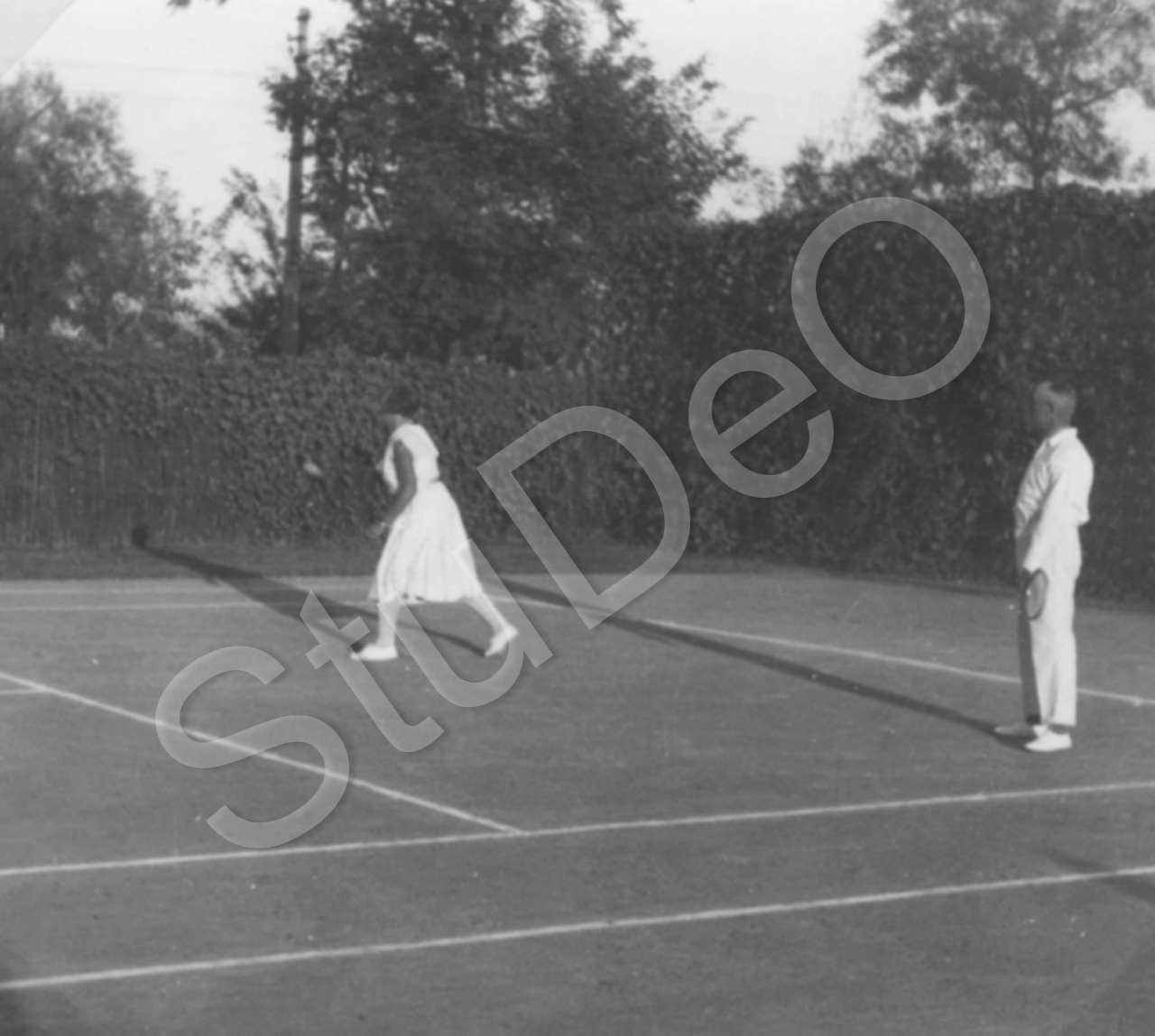 Beschreibung: Tennis im Internat. Club Nanking, einstiges Dt. Konsulat, Erika Simon-Eberhard, Hr. Lassen.