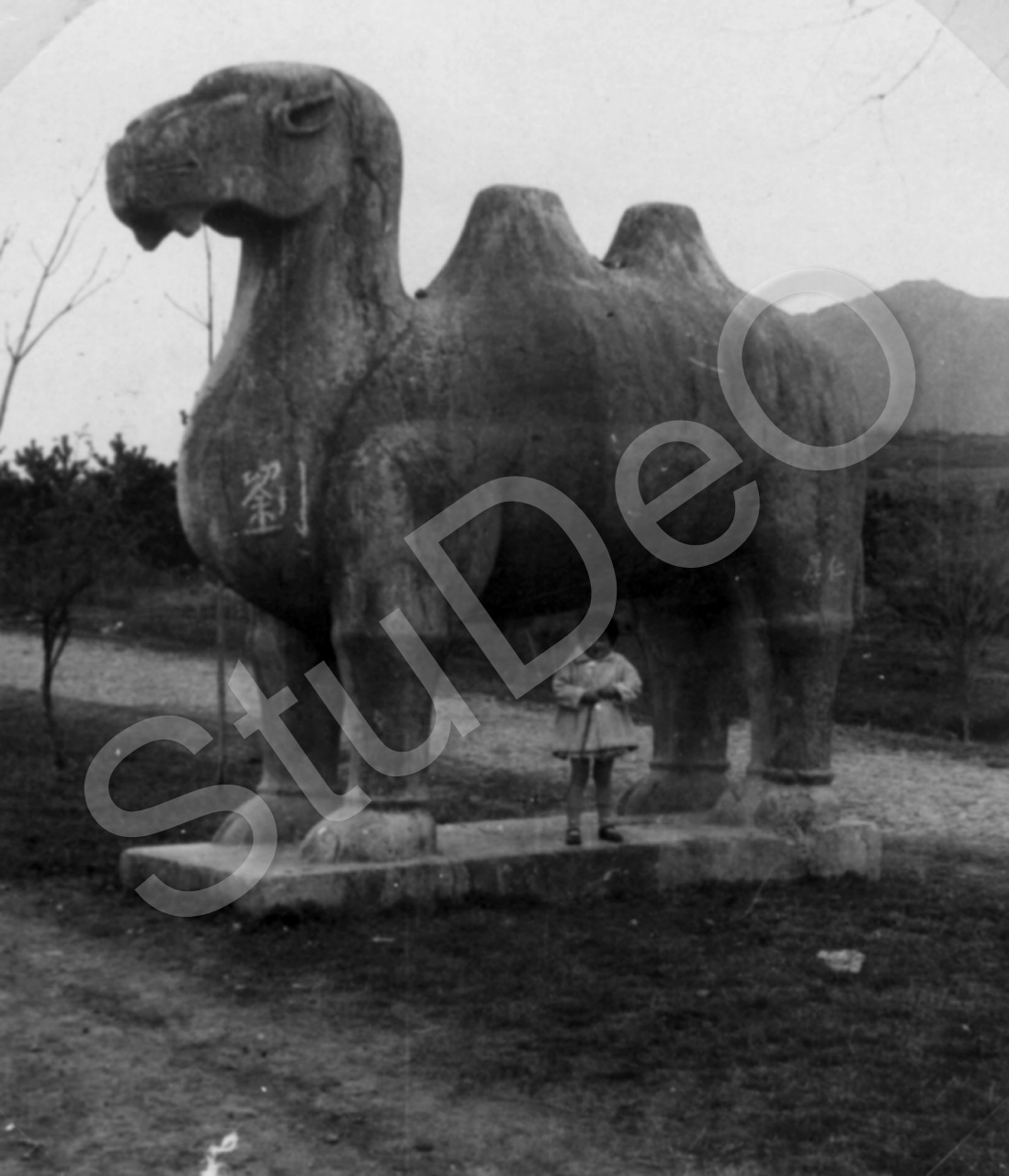 Beschreibung: Steindromedar in Geisterallee, Kind Ilse Simon-Eberhard (verh. Steger).