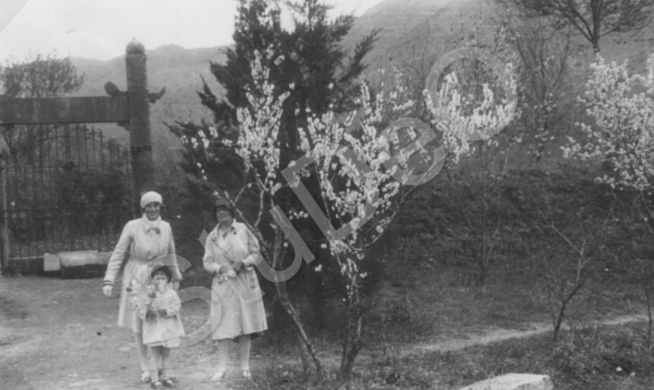 Beschreibung: Anlage am Königsgrab nördl. Taiping-Men (im NO Nankings), Blütenpracht, Fr. Beelitz, Erika Simon-Eberhard mit Tochter Ilse.
