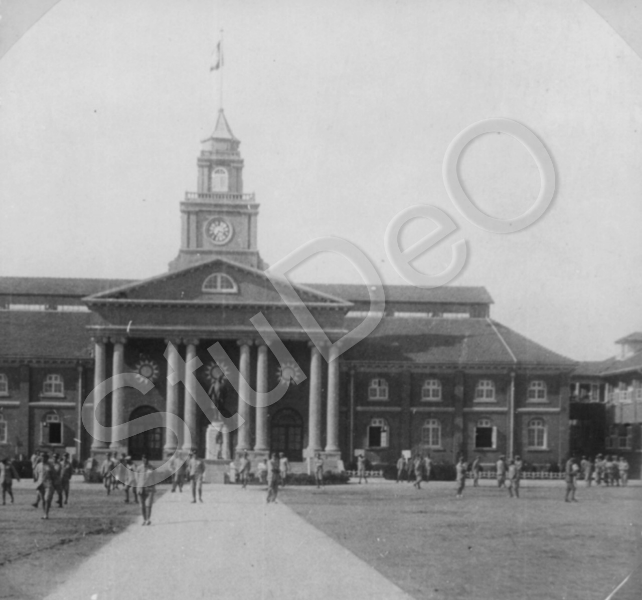 Beschreibung: Hauptbau Kriegsschule, davor Sun Ya-tsen-Standbild.