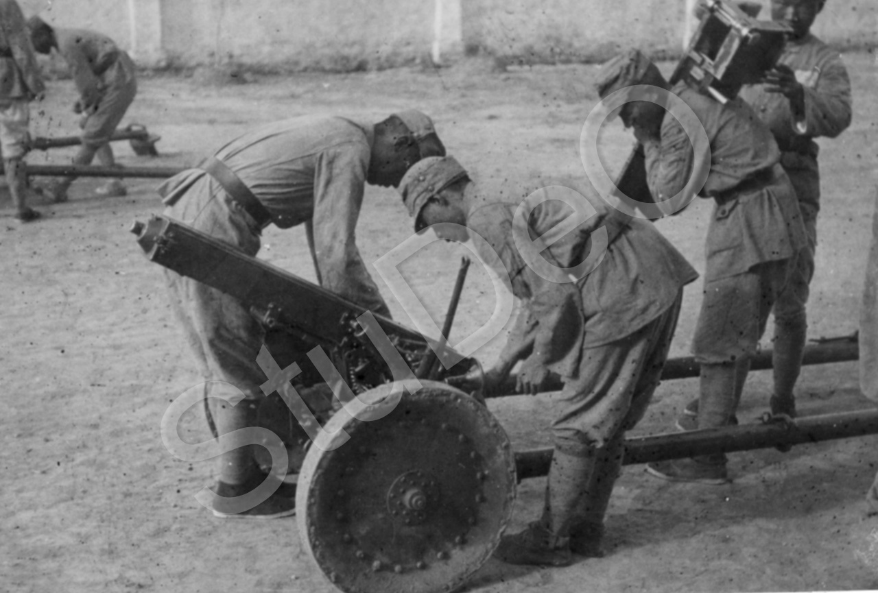 Beschreibung: Infanterie Begleithaubitze wird zusammengesetzt.