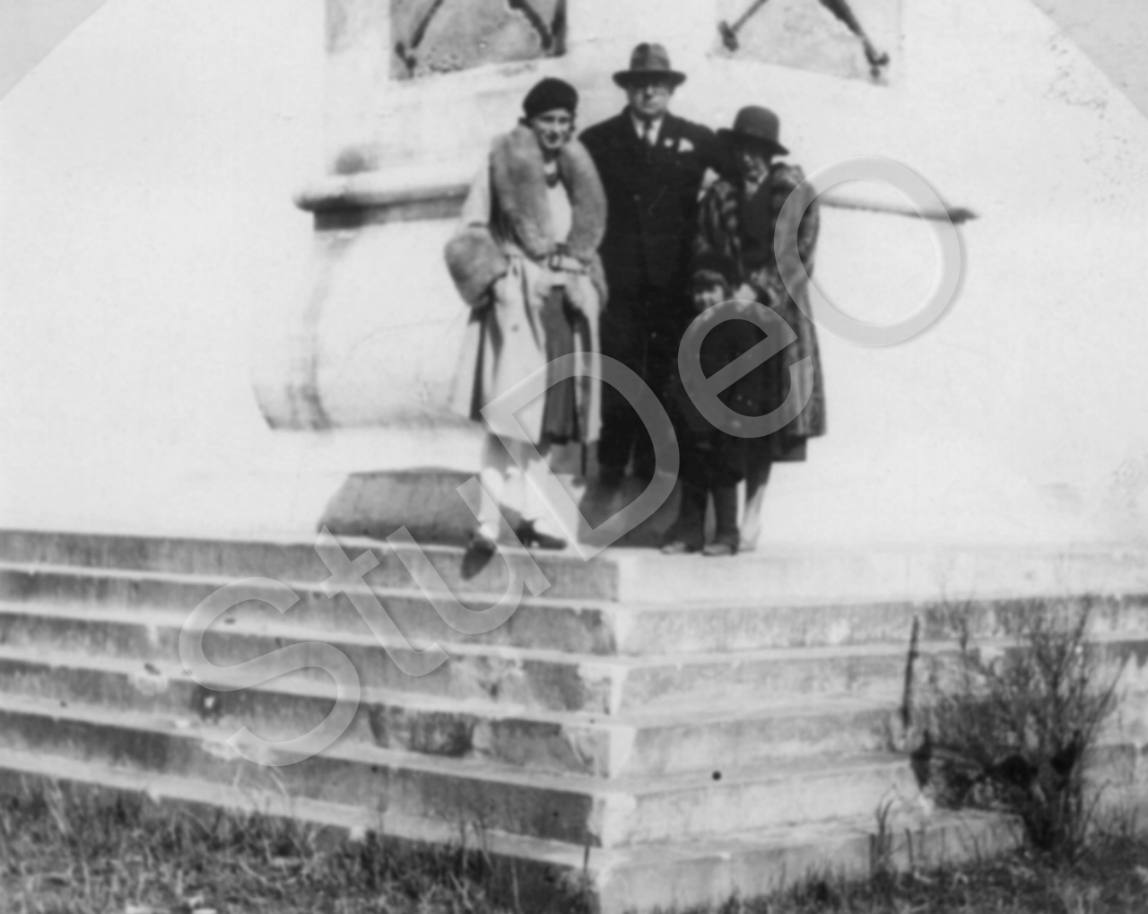 Beschreibung: Erika Simon-Eberhard, Frau Beelitz, Ilse am Denkmal auf Purpurberg.
